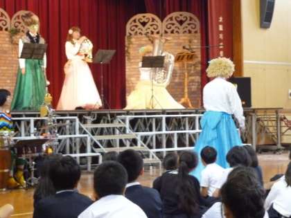 今回はローゼンビート音楽研究所の方々に来ていただき,音楽劇「シンデレラ」を鑑賞しました。お馴染みのシンデレラのストーリーをベースに,クラシック,ロック,ラテン,童謡,アニメなど様々な曲を演奏してくださいました。子どもたちは口ずさんだり,手をたたいたり,笑ったり,音楽劇を楽しみました。