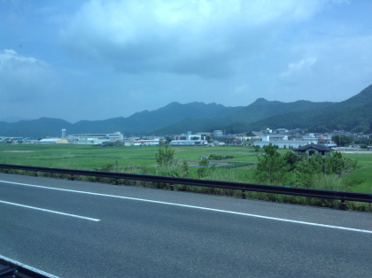 午前9時51分にバスは北近畿道に入りました。山の形がいろいろあって風景が楽しくなってきました!