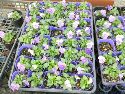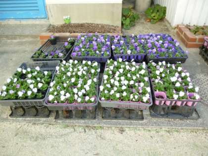 10月にプラグ苗を植え,子どもたちが水をあげてお世話をしてきたパンジーやビオラが花を咲かせています。12月4日には大阪ターミナルビルに出荷する予定です。