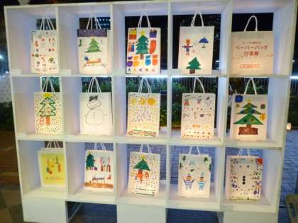 子どもたちが描いたペーパーバッグの中にろうそくが灯され,やわらかい行燈の光が街を飾りました。道行く人から「子どもたちの作品,いいね!」という声が聞こえてきましたよ。