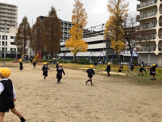 ずいぶん葉も落ち、寂しげな東公園も子どもたちがやってきて元気をとりもどしたようです。