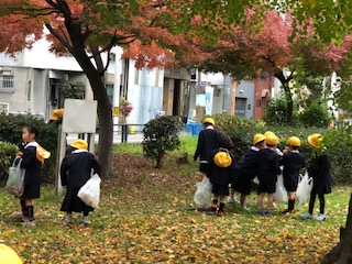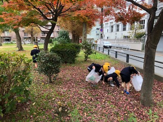 公園でなかよく遊んで、体もあたたまったので、落ち葉集めをスタート!