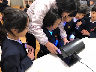 今日は、発育測定の後、手洗い実験をしました。インフルエンザも流行し始めています。予防のために、しっかり手洗いの大切さについて学習です!