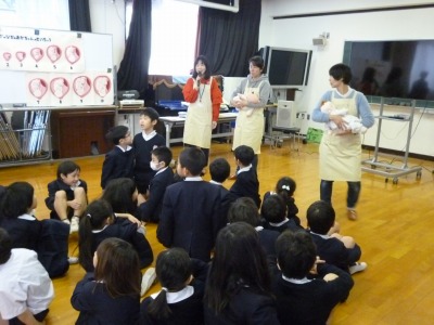 お母さんのお腹の中で赤ちゃんが成長するようすや,赤ちゃんが誕生するときの画像を見て,子どもたちは自分もこうして産まれてきたということに改めて気づきました。また,読み聞かせや赤ちゃん人形の抱っこ体験を通して,子どもたちの表情はいつも以上に柔らかく優しくなっていました。