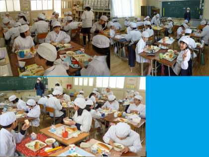 久しぶりの給食は「とてもおいしいー」嬉しそうな顔で食べていました。