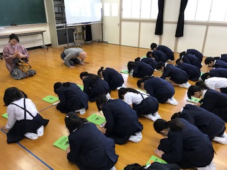 能楽体験2回目です。能のご指導の前にまず礼儀作法からスタートです。