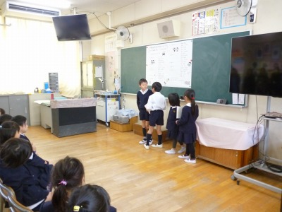 今日の学習参観では、この1年の成長を振り返り、一人一人ができるようになったことを発表しました。