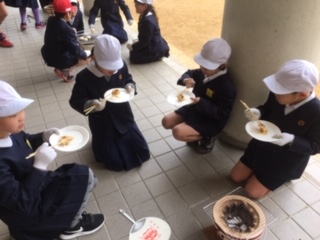昔の道具、七輪を使っておもちを焼きました!!
