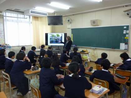 画像を用いて英単語のレッスンをしました。マリアン先生の質問に子どもたちは元気に答えていました。