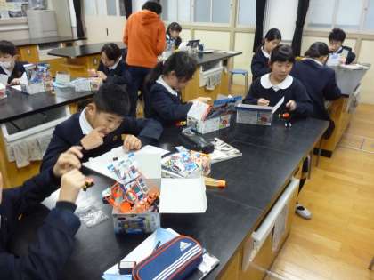 最近はプラモデルを作って遊ぶ機会も少なく,子どもたちは設計図・説明書を見ながら四苦八苦…  まずは,図と同じ向きに必要な部品を置いてみて…