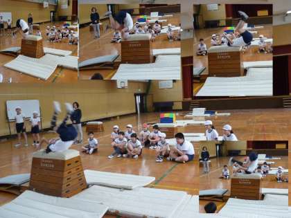 今日の出来栄えをみんなの前で発表しました。自信をもって台上前転できる児童が増えました。