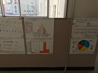 見る人に分かりやすくするためにグラフや表を書くことや、自分たちの考えを必ず書き入れることを意識しながら学習を進めました。完成したポスターからはクラスの生活の様子が見て取れました。