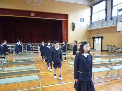 いすに座る姿勢、礼の背筋、動き方、卒業式に向けて一つ一つ確認し、良い卒業式になるようにがんばります。