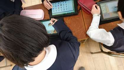 タブレットを使っての学習の様子です。