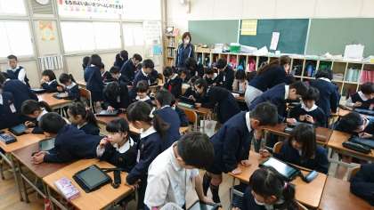 今日は1、2年生合同でタブレット学習と情報モラル学習を行いました☆