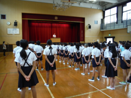 校長先生から,季節を感じてほしいこと,また防災の日にちなみ,自分の命を守るように心がけること,訓練のめあてを考え,適切な行動をとるようにと話がありました。