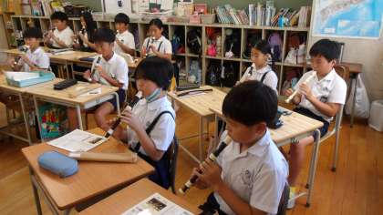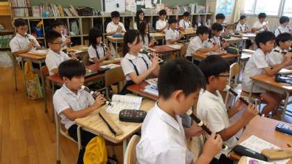 4年生の子どもたちは音楽の時間に、リコーダーの練習をしていました。