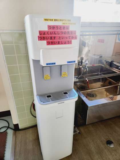また、創立110周年を記念し、PTAから周年行事の記念事業委員会に寄贈いただいたウォーターサーバーも、子どもたちが利用できるよう稼働を始めており、暑さ対策に努めています。