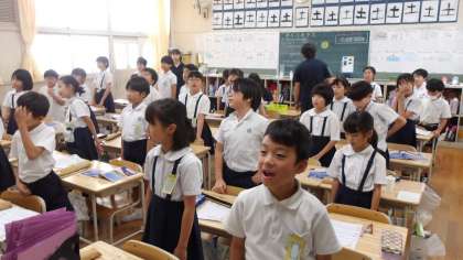 3年生が音楽の時間に「ふじさん」の歌を歌っていました。