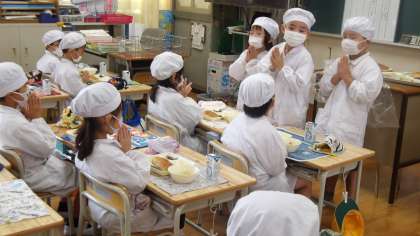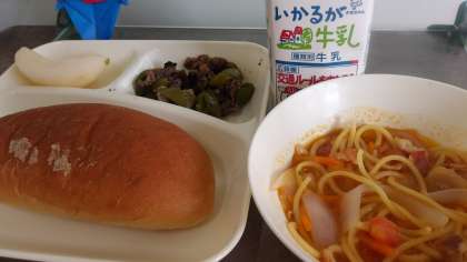 給食で提供される果物は基本的に皮つきのものが提供されますが、豊崎小学校ではおよそ60個もの梨を、2人の給食調理員さんが皮をむいて提供してくださいました!