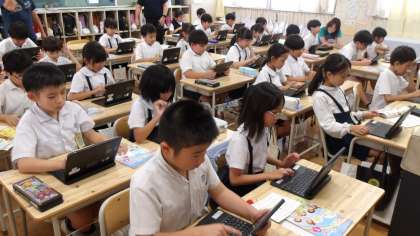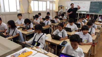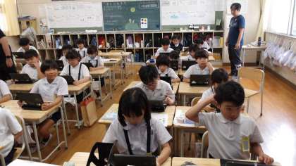 今日はタブレット端末を活用しながら、外国語を楽しく学べる活動をしました。