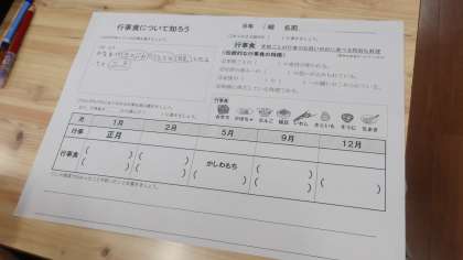 日本では季節ごとにさまざまな行事がありますが、いろいろな意味や願いを食材や料理に込めて、食する機会があります。そんな伝統にのっとった「行事食」について、今日は学習をしました。