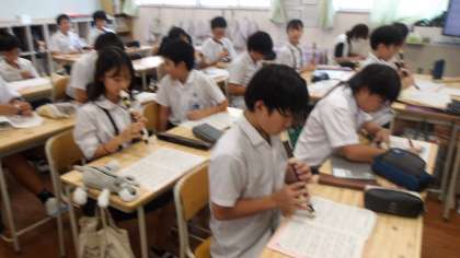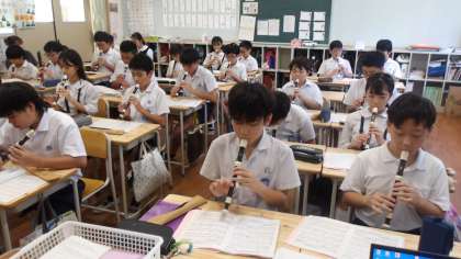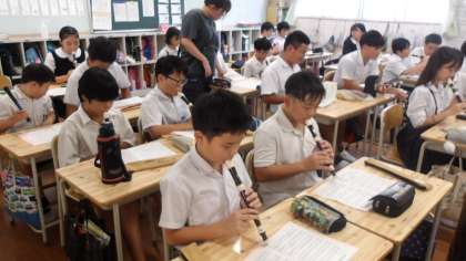 6年生が音楽の時間にリコーダーの練習をしていました。
