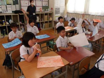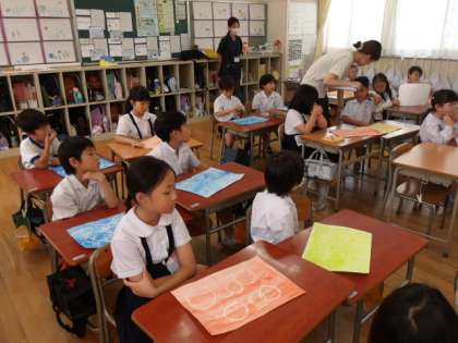 2年生は図画工作の時間に水彩絵の具の使い方について学習をしています。