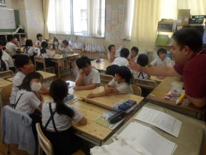 今日はC-NETの先生が来られ、3年生以上の学年で外国語、外国語活動の授業が行われました。