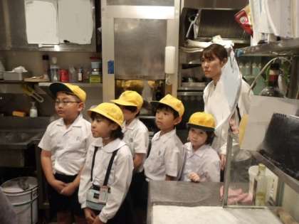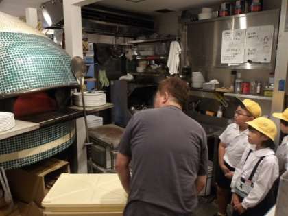 子どもたちからの質問に店長さんがていねいにお答えいただいたあと、厨房にある火の入った大きな石窯も見せていただき、子どもたちは大喜びでした。