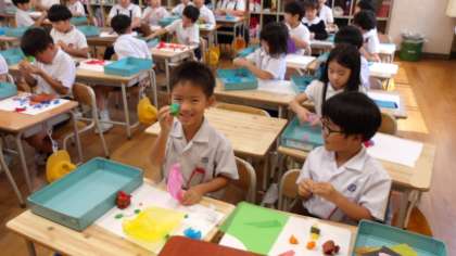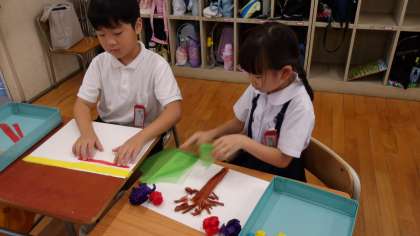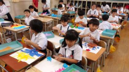 1年生は図画工作の時間に「おはながみ」を使った作品作りに取り組みました。