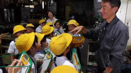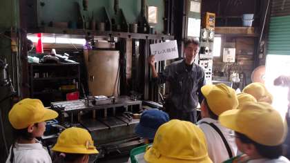 3年生は社会科の時間に地域学習や工場で働く人びとの仕事について学習をしており、今回、吉川鐵工所のみなさまのご厚意により、お仕事のことについて子どもたちの疑問に答えていただき、工場内を見学させていただきました。