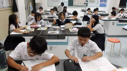 前回の理科の授業では、運動場で空気てっぽうを使った実験を行った4年生。