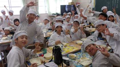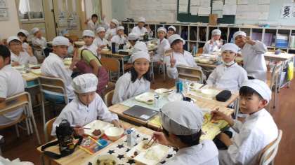 今日の給食時の様子は、5年生、6年生の写真を使っています。