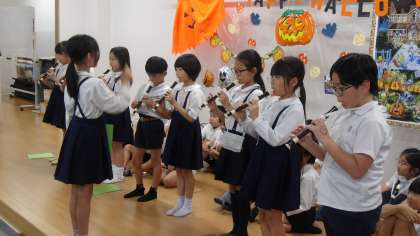 子どもたちは3年生になってはじめて練習をしたリコーダーの演奏を、みなさんに聞いていただきました!