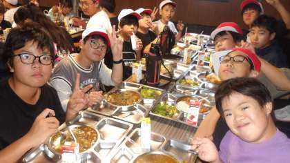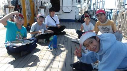 船内で食べるか、デッキで食べるか、班で決めて食べます。