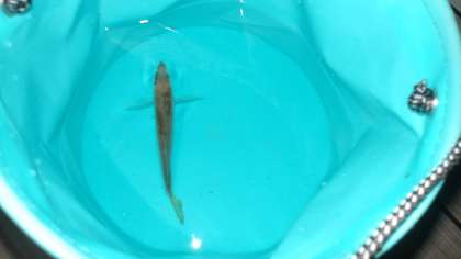 1匹だけ記念写真を撮ってから、逃がしてあげました。