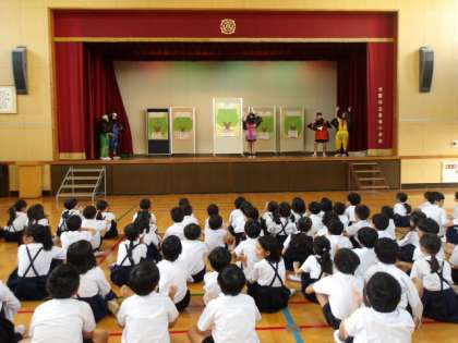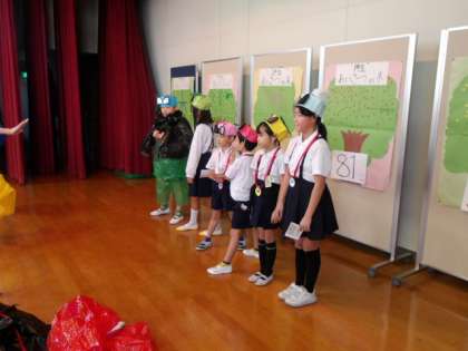 朝会の時間に、あいさつ運動の結果発表がありました。