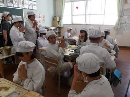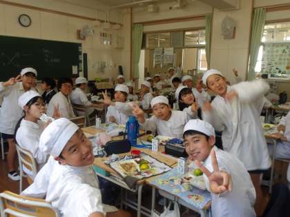 今日の給食時の様子は、6年生の写真を使っています。