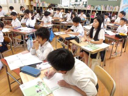 学習のまとめとして、豊崎地域で自慢できるものについてみんなで考え、自分や家族が暮らす豊崎の町を大切に思って頑張っている人がいるからこそ、みんなが安心して過ごせる住みよい町になることを知り、人と人とのつながりの大切さについて学ぶことができました。