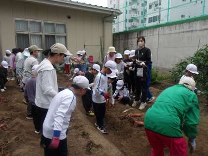 地域の皆様、大切に育てていただいた「さつまいも」、猛暑の夏場は連日のお水やりも大変であったことと思います。そんな中、豊崎小学校の子どもたちをお招きいただき、本当にありがとうございました。