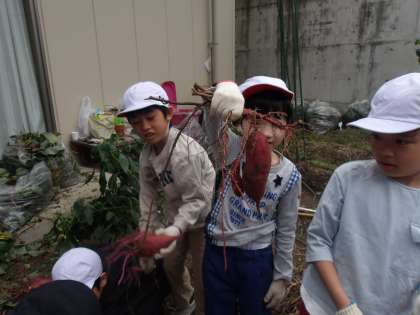 おおきなおいもがたくさんとれて、子どもたちは大喜びです!