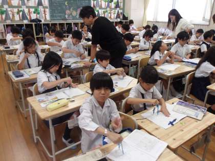3年生は算数の時間に「コンパス」の使い方について学習をしました。
