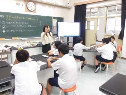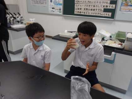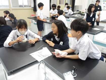 理科の時間に「ヒトのたんじょう」について学習している5年生。