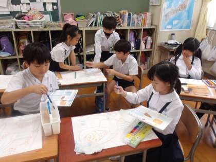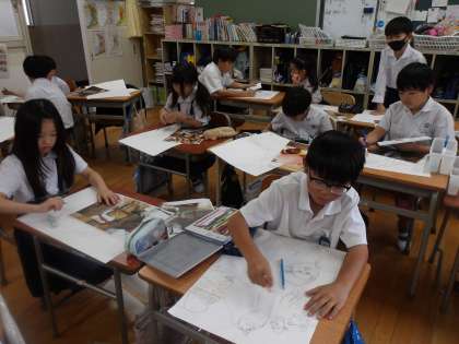 4年生は図画工作の時間に「学校生活の1コマ」というテーマで絵を描き始めています。