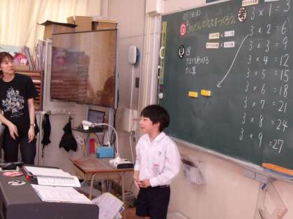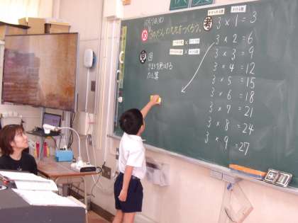 九九を覚えるだけでなく、なぜその答えになるのかということをみんなで確認しながら授業は進みます。