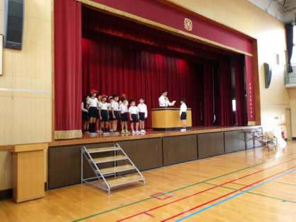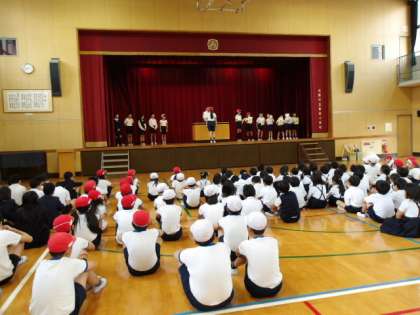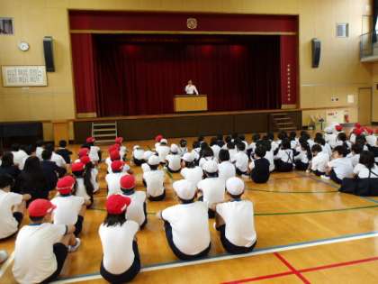 今日の朝会では、校長先生から運動会の練習についてのお話がありました。