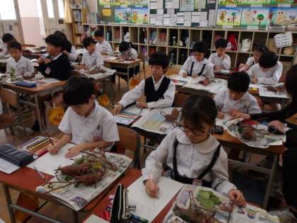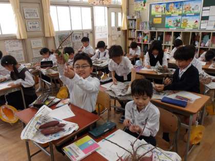 教室に帰って、「さつまいも」の観察記録を書きました。