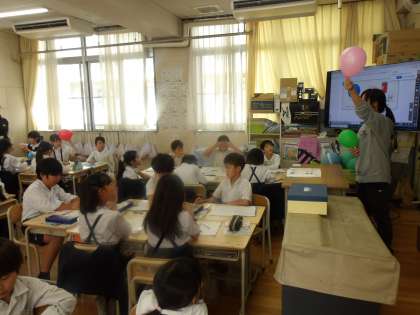 今日はドッジボールや風船、ボール、空き缶などを使って、「球」とはどのようなものを指すのか学習しました。