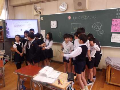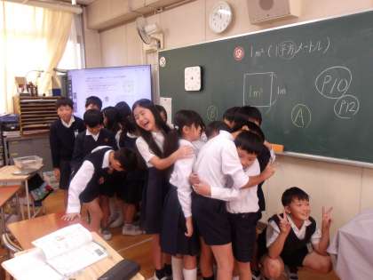 今日は「1平方メートル」の大きさがどれぐらいのものか、教室の床にテープを貼り、「1平方メートル」の大きさにどれだけ人が入るか試してみました!